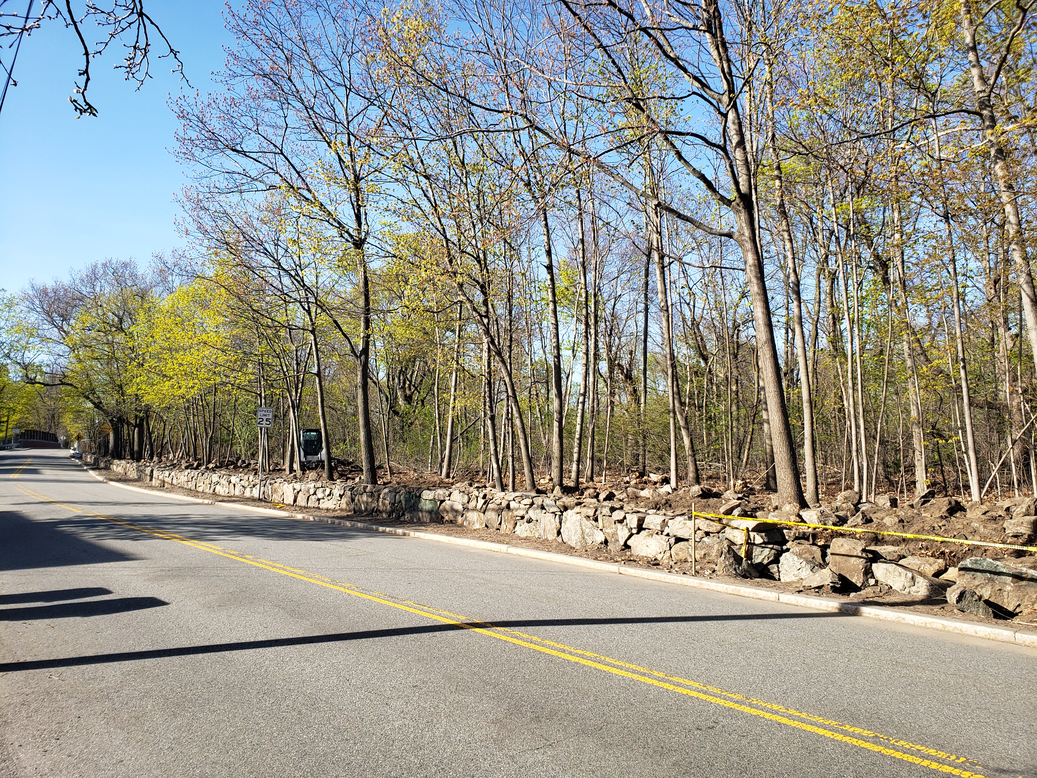 Have you seen all the amazing work happening at Thomas Brooks Park on Grove Street? If you have not been down this historic street in a while, drive by as you’re in for a treat! Progress is moving right along with the restoration of Pomp’s Wall and the Fieldstone Wall. Here is a quick summary of what has happened in the last two weeks.