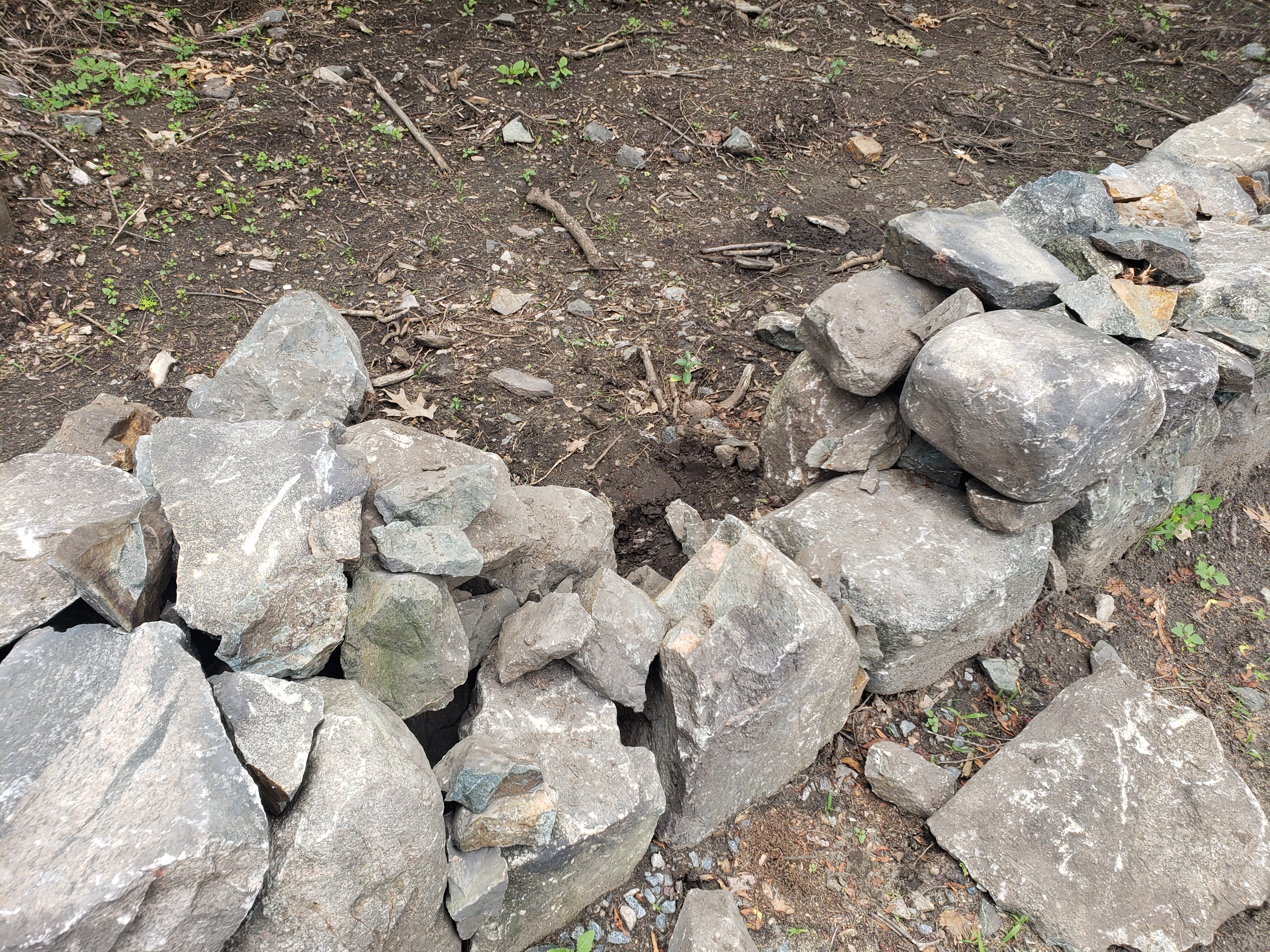 Almost done! The contractor for the field stone wall finished their work at the beginning of June. For the first time in perhaps a half-century, Thomas Brooks Park has a complete wall from end to end. There were some important discoveries which we wish to share with you! First, some photos of the work: